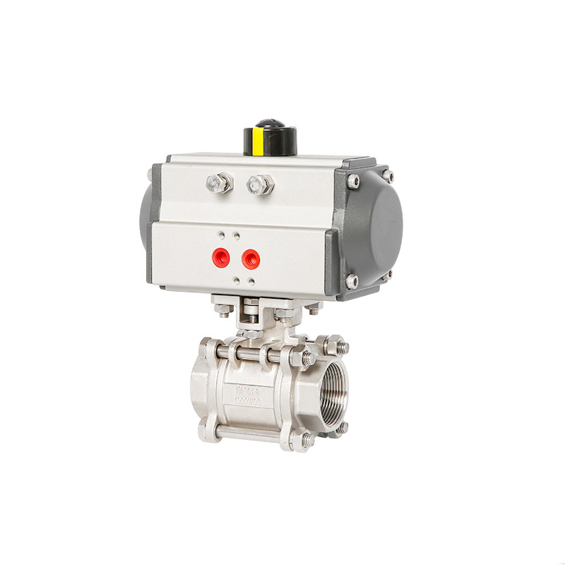 Vanne à bille pneumatique en acier inoxydable - Vanne à bille à filetage interne en trois pièces, vanne à bille filetée pneumatique à double effet à plateforme haute DN38